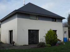 Elle comprend au rdc :un Salon-Séjour de 41 m2 avec un poêle à granulés ouvert sur une cuisine équipée et aménagée, une suite parentale - salle d'eau, une entrée, une arrière-cuisine, un garage.