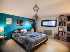 A l'étage : Trois Chambres spacieuses de 15 à 17 m2, une Salle de Bain, un Dressing,un wc.