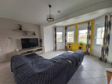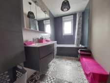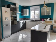 Une grande et lumineuse pièce de vie aux couleurs vives et actuelles vous accueille, avec cuisine A / semie E, ouverte sur le séjour et le salon dans un grand bow window. Idéal en famille ou pour recevoir.