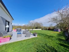 En impasse et à pied du Bourg, vous serez CHARMÉ par l'aménagement extérieur de QUALITE en arrivant devant la maison: ENROBE et PARTERRES MODERNES.
