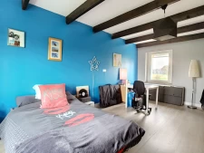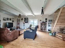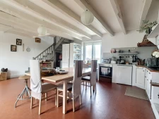 Une grande Pièce de vie de 38 m2 avec sa Cuisine équipée et aménagée et un poêle à granulés , une chambre, une salle d'eau, un wc.