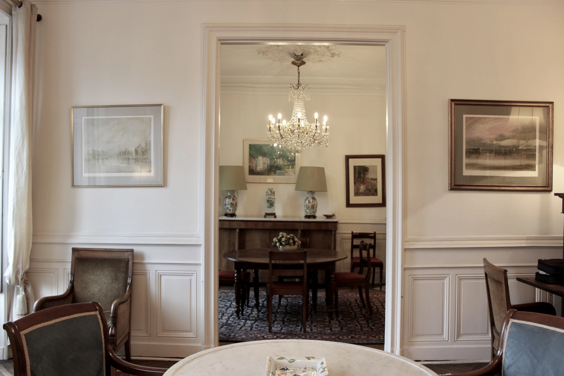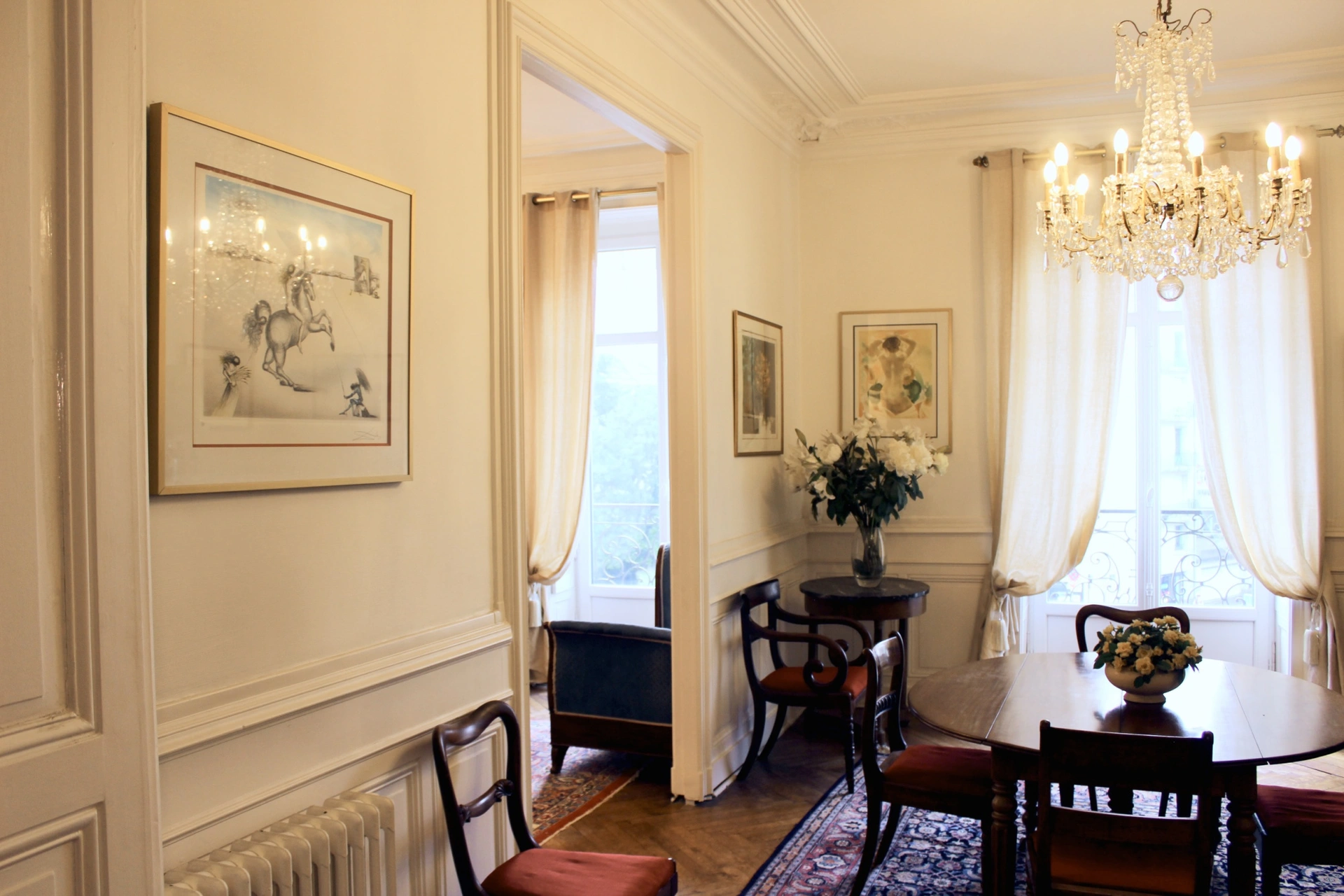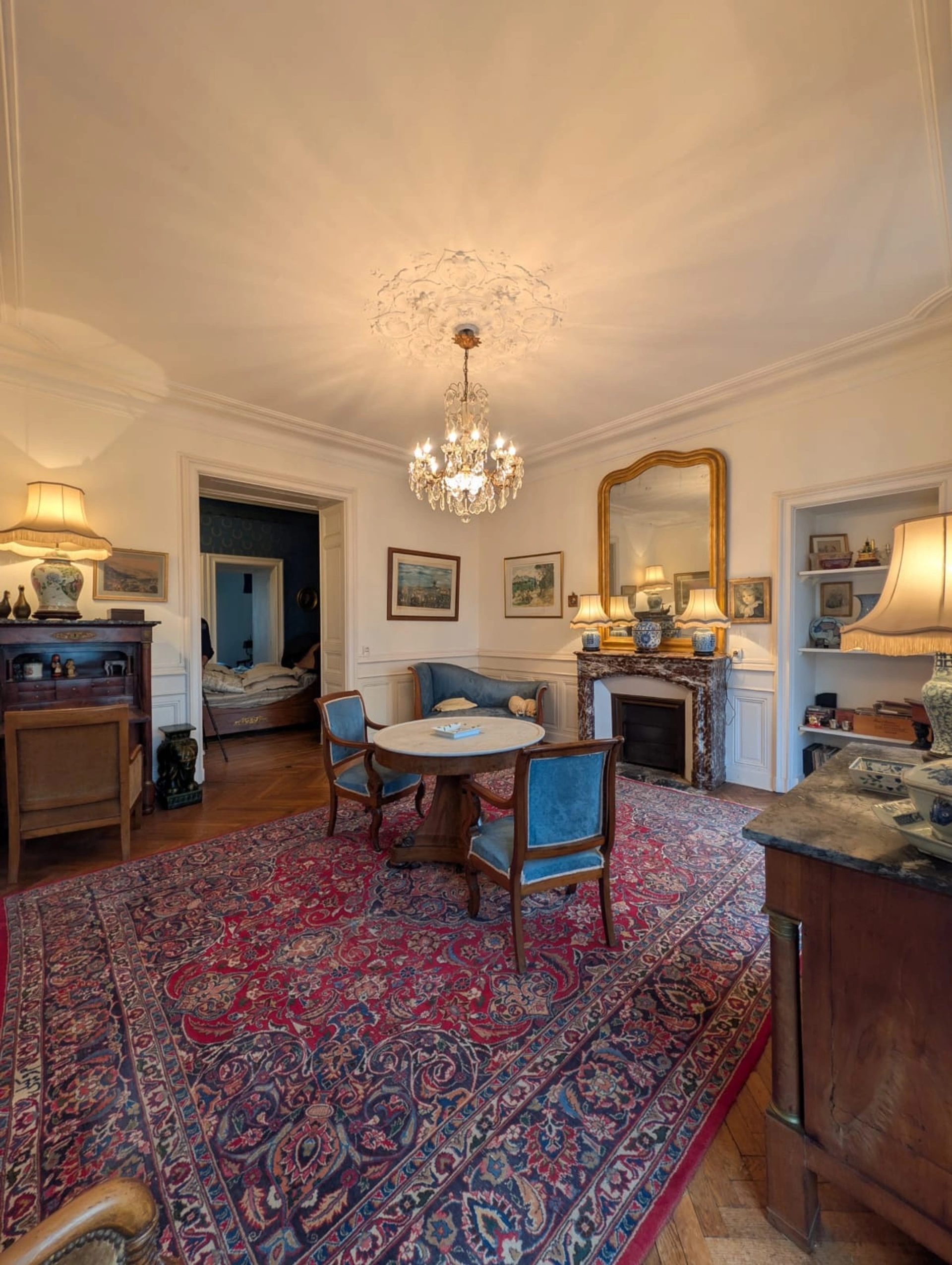 Un caractère authentique avec un double salon / séjour en enfilade baignés de lumière, sublimés par des lustres à pampilles. Un espace généreux et fluide, conçu pour la vie moderne dans un écrin historique. Un emplacement stratégique, proche des commerces, des écoles, des transport, tout se fait à pied.
