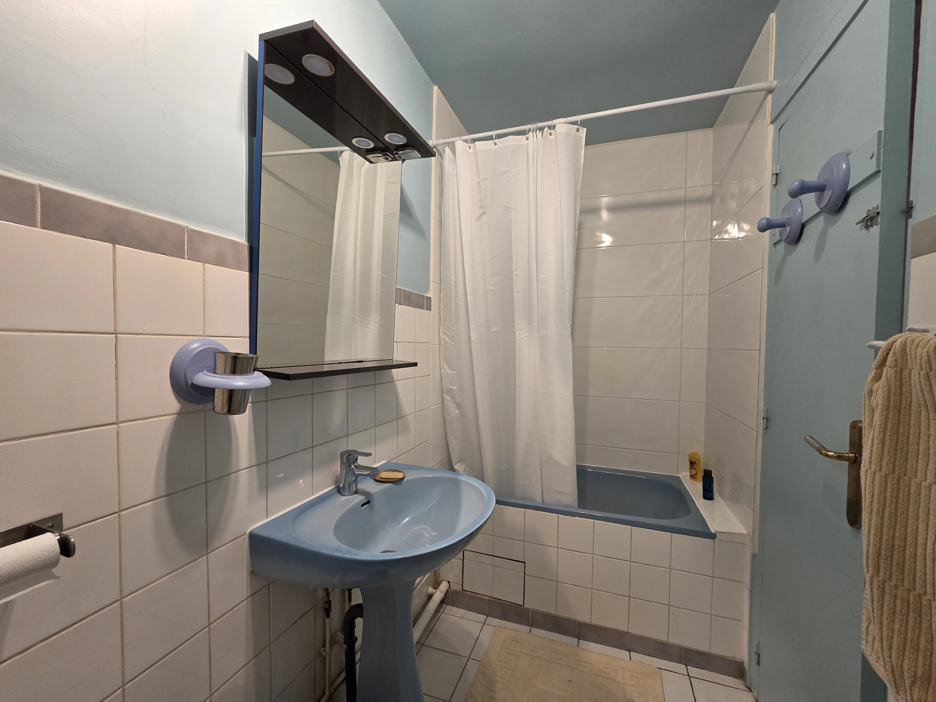 La salle de bains avec WC offre quant à elle un potentiel de modernisation, laissant la possibilité au futur acquéreur de personnaliser l'espace.