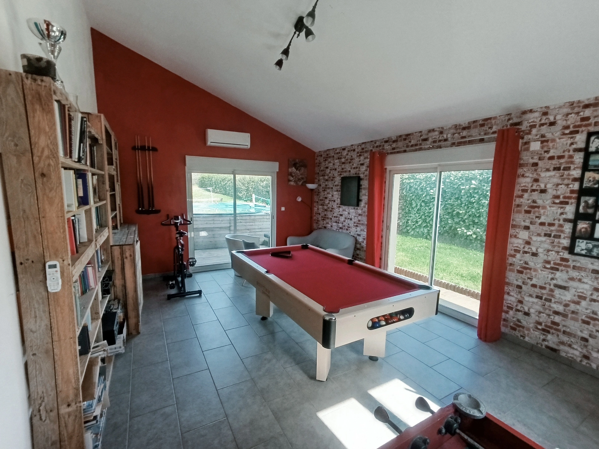La maison développe environ 145 m2 habitables. Elle propose en rez de chaussée une double pièce de vie, une cuisine aménagée et équipée ainsi qu'une suite parentale, WC et Laverie.