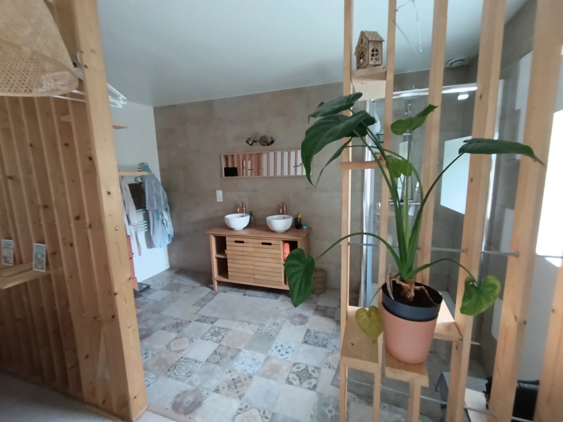 A l'étage une suite parentale avec chambre, salle d'eau privative et grand dressing. Puis 3 chambres non mansardée et salle d'eau. Ce niveau présente la particularité d'être desservi par deux escaliers permettant de bénéficier d'un espace autonome pour les parents et les enfants. L'ensemble communiquant néanmoins via le dressing de la suit parentale.