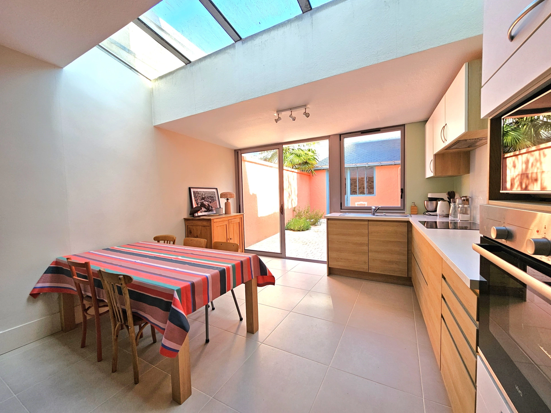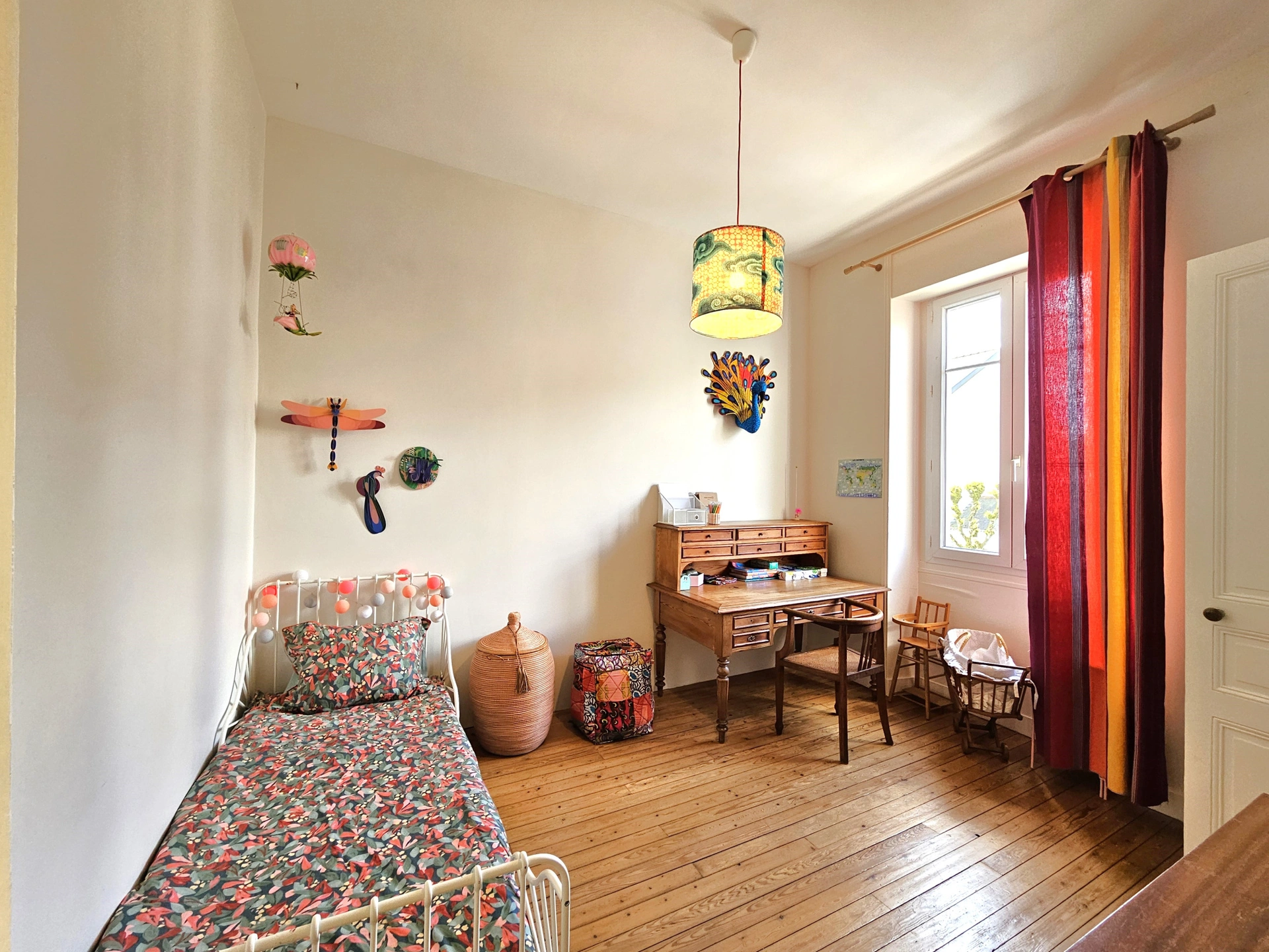 Elle vous propose un salon sur parquet chevrons, un double séjour avec cuisine ouverte, 4 chambres et deux pièces d'eau réparties sur les deux étages. Vous bénéficierez également d'une cave sous partie. Un patio avec dépendance couverte agrémente le bien. Luminosité, volumes, charme, sont les maitres mots pour cette adorable maison de ville.