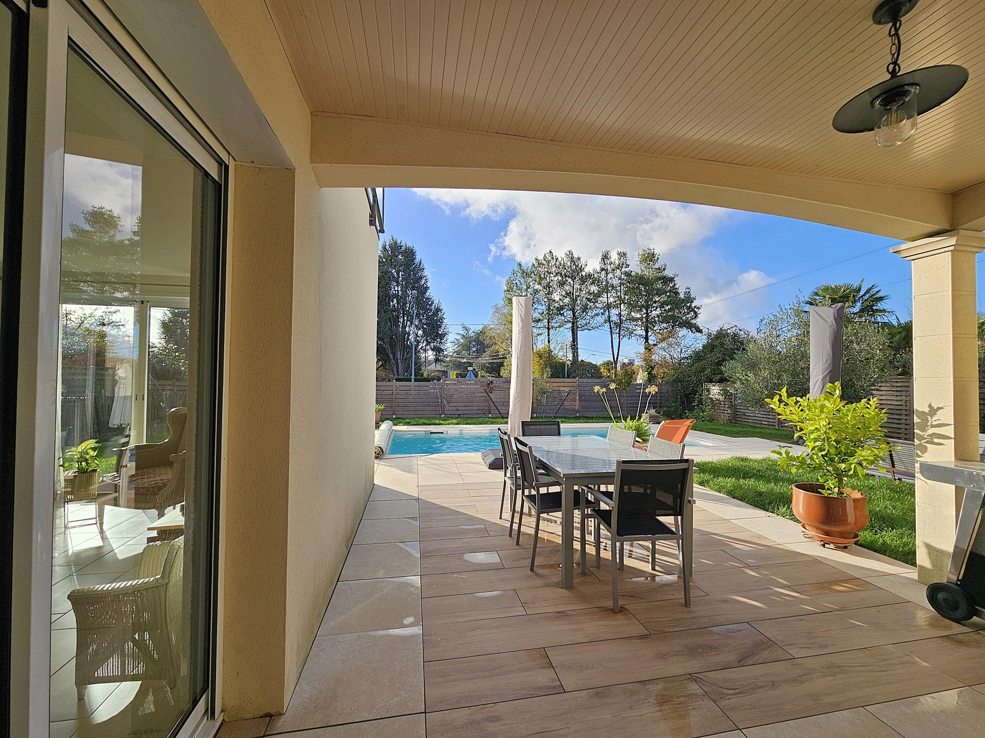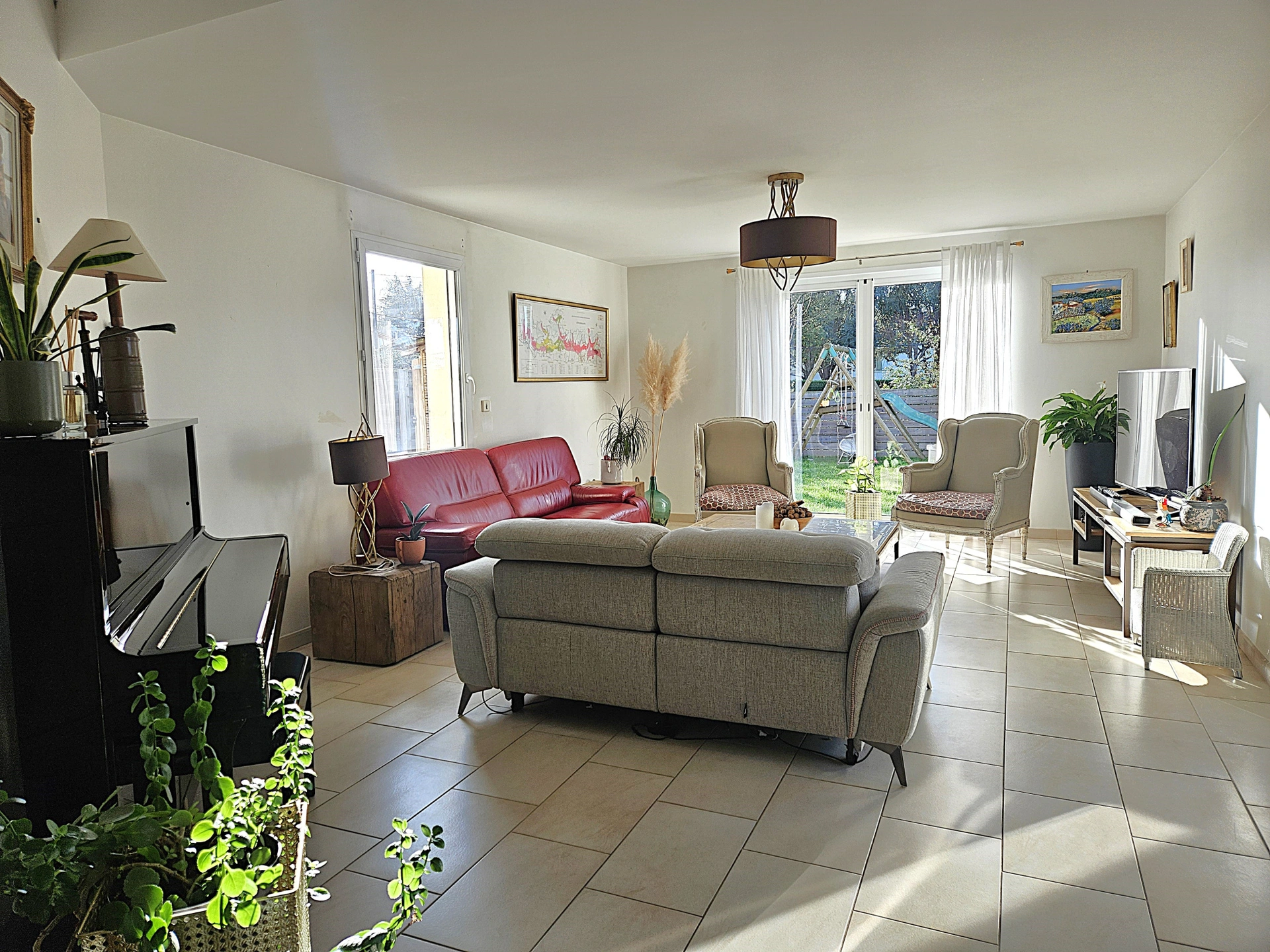 Lumineuse, très spacieuse et bien distribuée, tels sont les qualificatifs de cette maison de 2008 destinée à une grande famille. L'entrée s'ouvre sur un vaste espace de vie composé d'un séjour, d'une cuisine aménagée et équipée, d'un salon TV et vous profiterez d'une chambre de plain-pied avec salle d'eau. L'étage est partagé par une suite parentale, trois grandes chambres et salle de bains, un bureau et une belle terrasse proprice au farniente. Une arrière cuisine, un grand garage complètent l'ensemble.