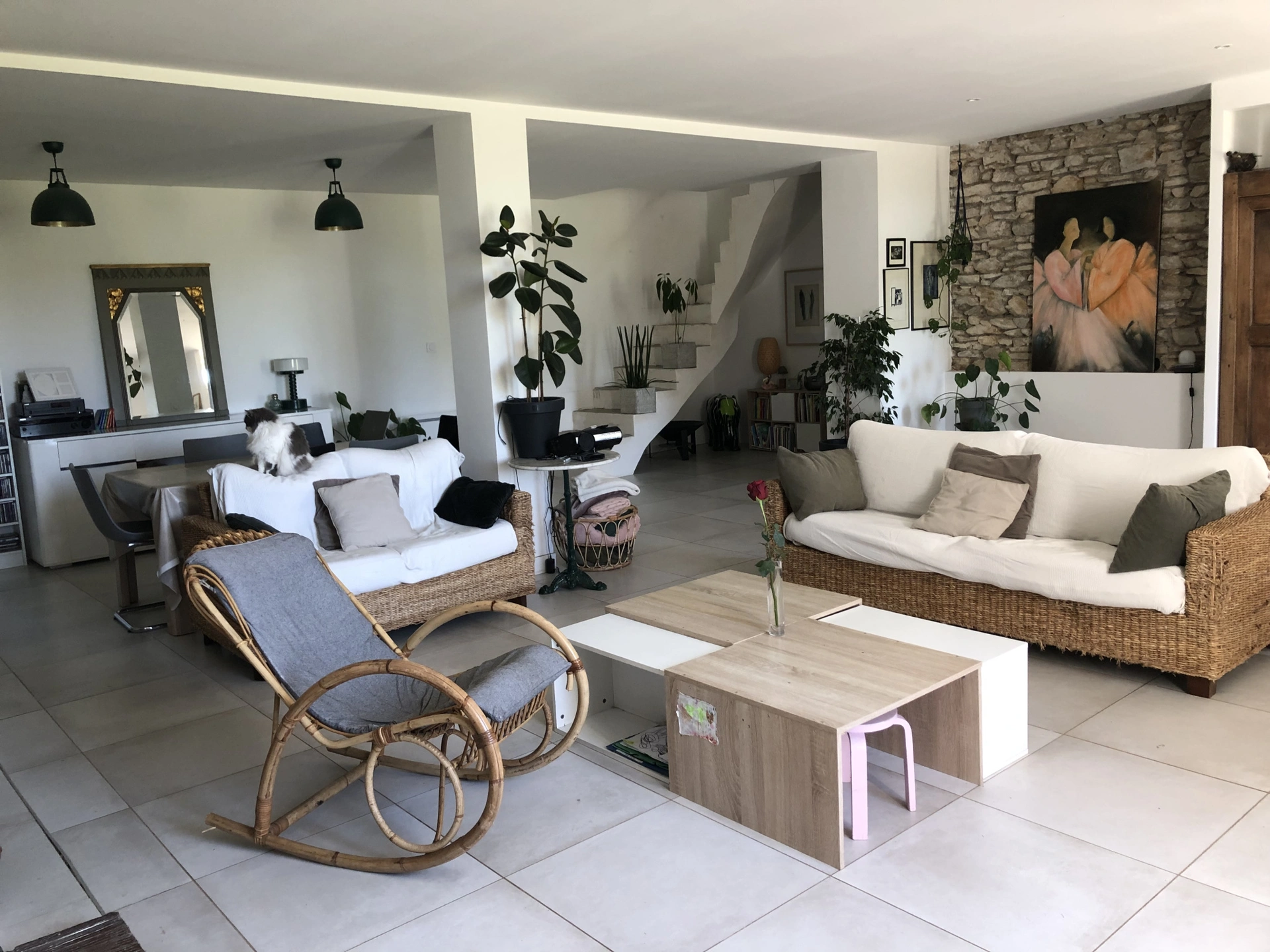 Dès l'entrée, vous serez séduits par le cachet d'un vaste séjour de plus de 60 m2, avec sa cheminée (insert) ainsi que par une grande cuisine aménagée et équipée permettant de profiter des repas en famille. Cette maison dispose également en RDC d'une chambre avec son dressing, d'une salle de bains (douche et baignoire) et de WC.
