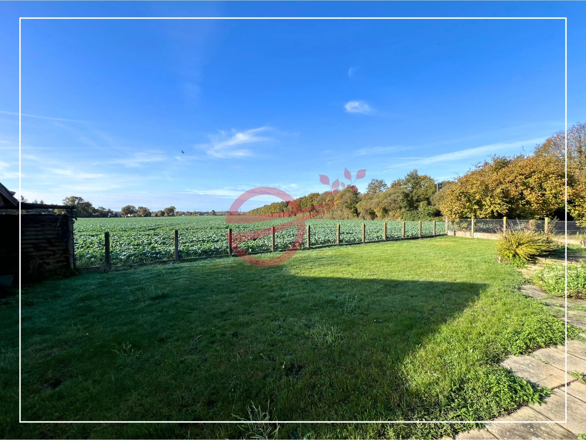 Un garage attenant vient compléter le bien.À l'extérieur, vous profitez d'un terrain d'environ 800 m2 avec un bel espace jardin et une vue ouverte.