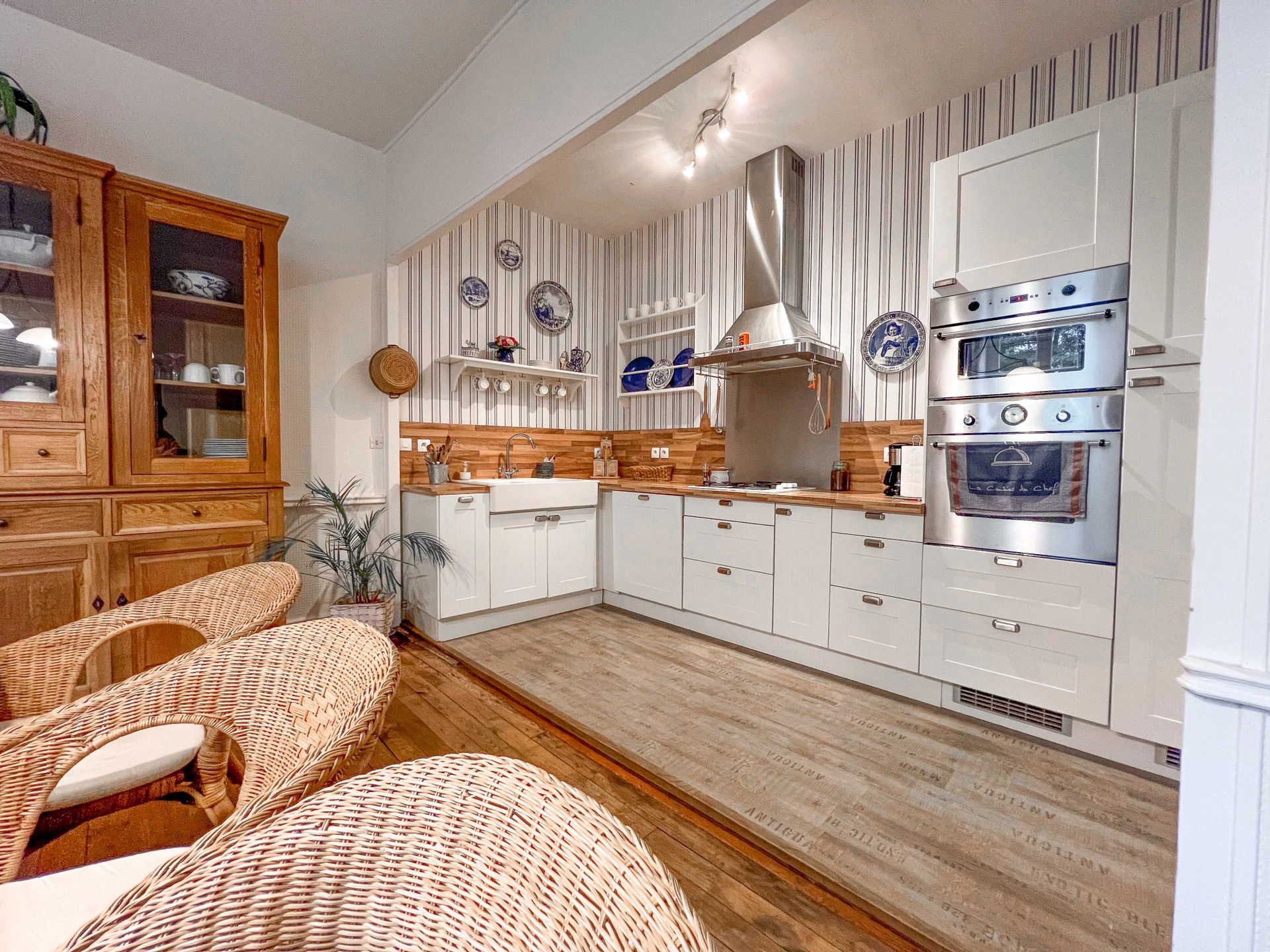 Outre ses beaux volumes, vous serez conquis par l'authenticité et l'élégance qui se dégagent de chaque pièce. Au RDC, vous découvrirez une salle à manger conviviale, ouverte sur une cuisine aménagée et équipée, parfaite pour les moments en famille. Vous pourrez profiter également de deux salons, dont un agrémenté d'une cheminée ouverte et d'une vue directe sur le jardin. Un bureau et un WC complètent ce niveau. Un escalier ancien, au charme préservé, conduit à l'étage et dessert quatre belles chambres, dont deux disposent de leur propre point d'eau (à rénover). Une salle d'eau récemment refaite et des toilettes indépendantes complètent cet espace nuit. Le dernier étage offre un grenier d'environ 100 m2 à aménager selon vos envies suite parentale, salle de jeux, espace de travail... les possibilités sont nombreuses.