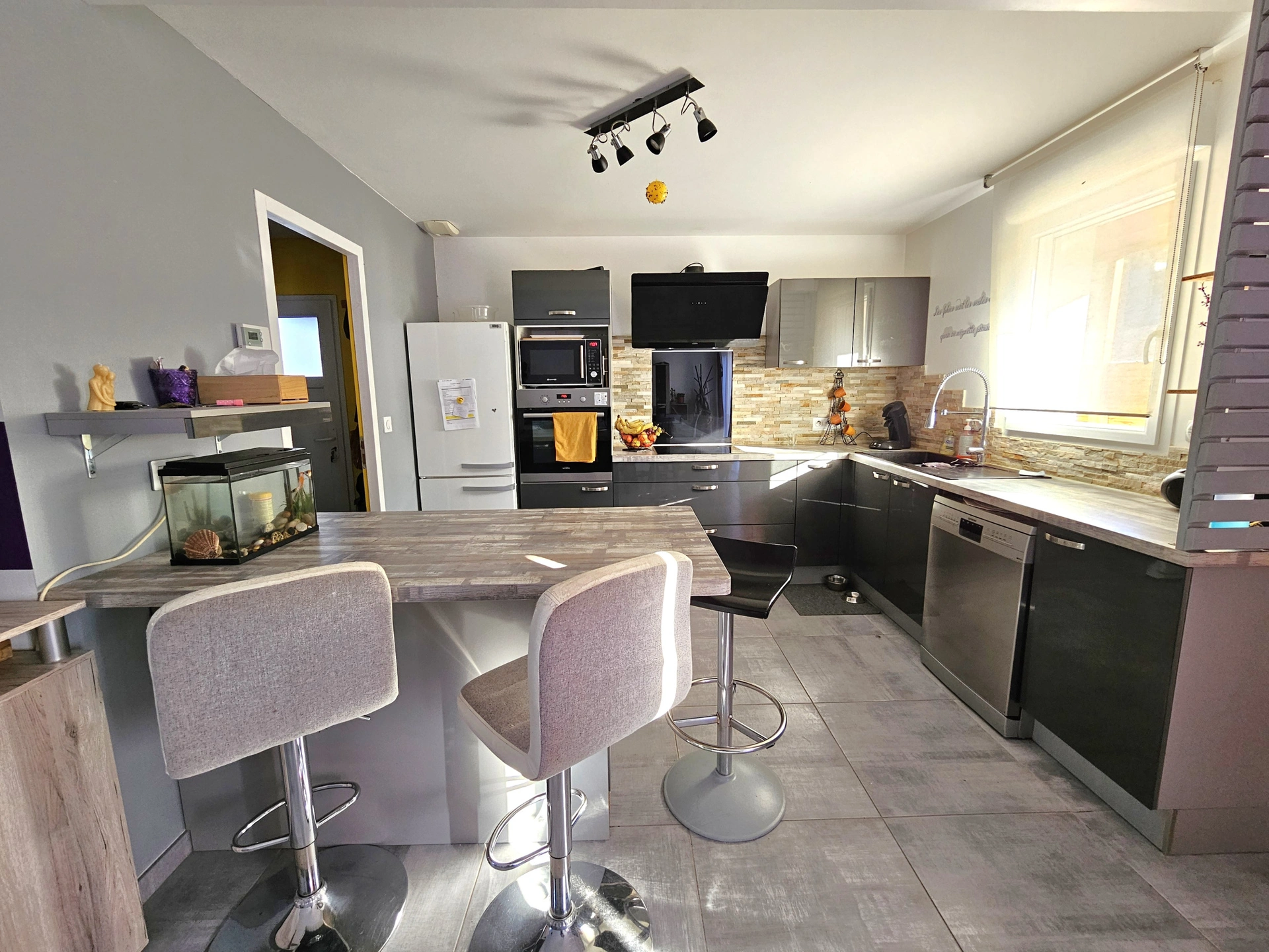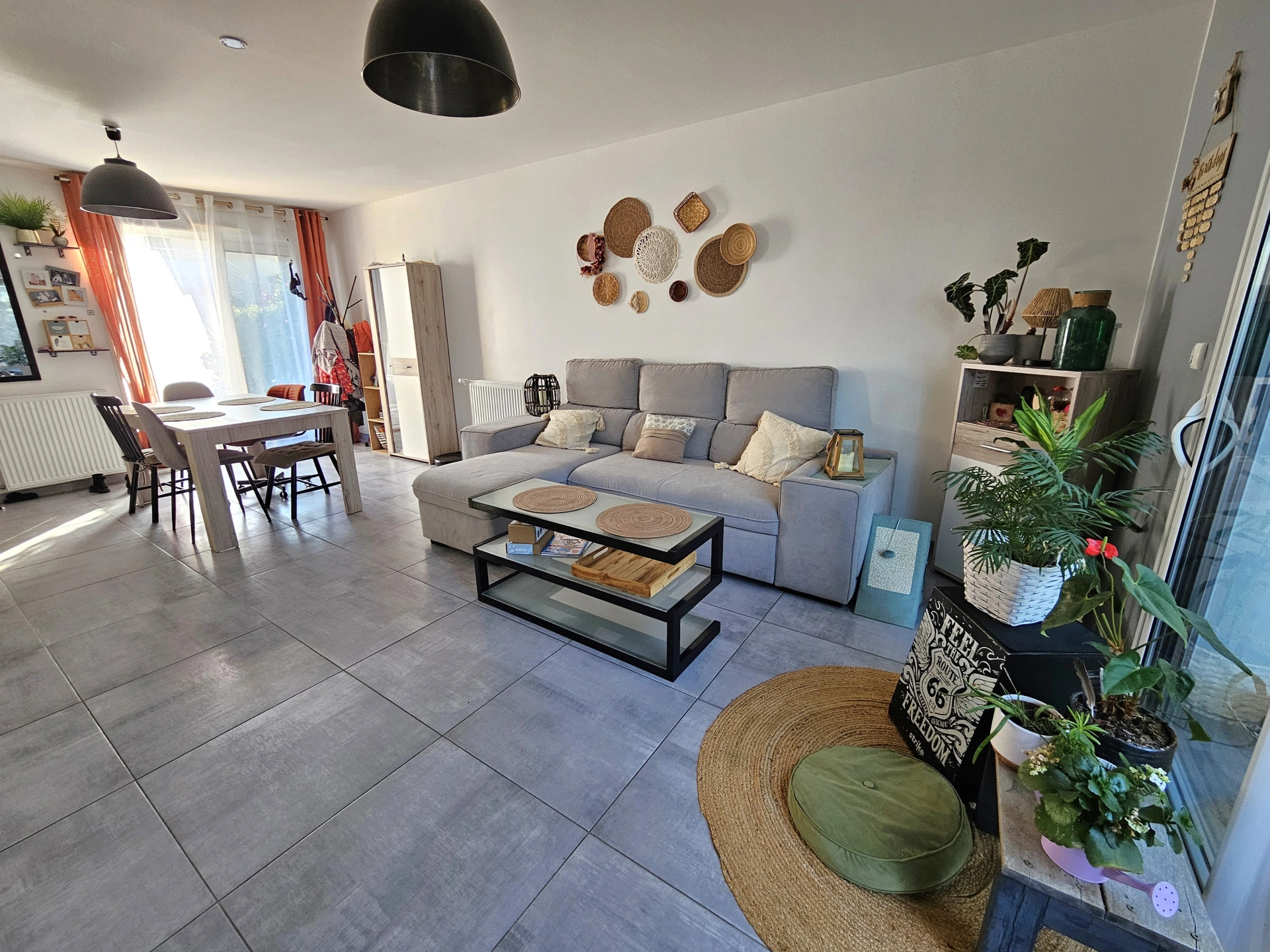 De découvrir, ce bien idéalement orientée sud, cette maison séduit dès l'entrée par sa pièce de vie baignée de lumière, où se mêlent harmonieusement salon, salle à manger et cuisine aménagée et équipée, ouverte pour des moments de partage et de convivialité.