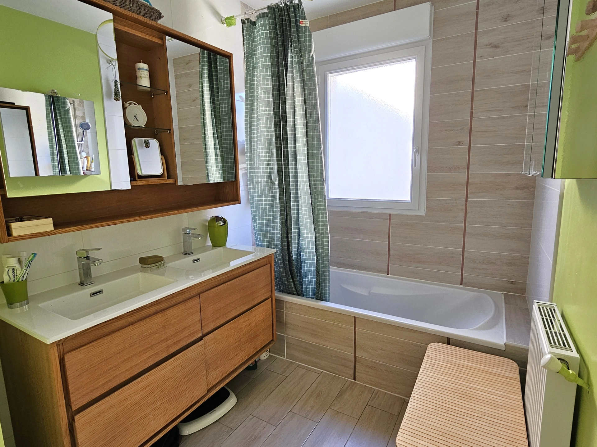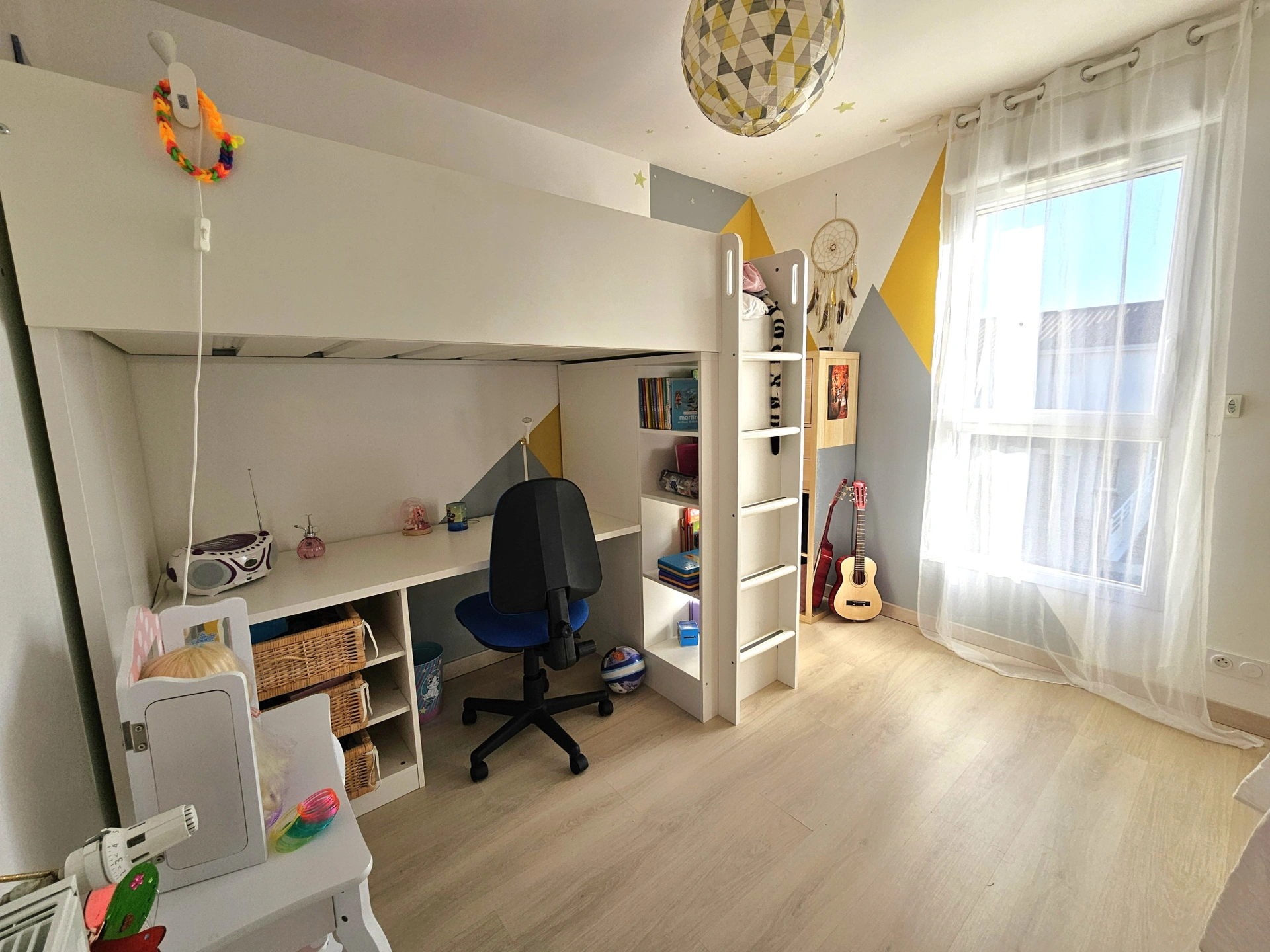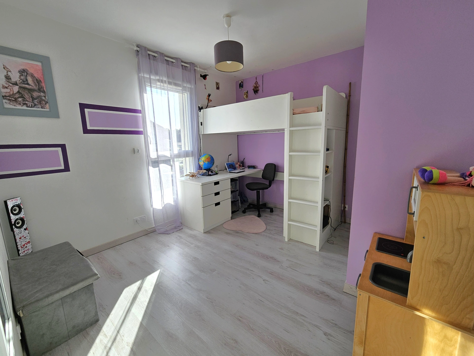 À l'étage, l'espace nuit se compose de trois chambres avec placards intégrés et d'une salle de bain fonctionnelle, parfaite pour accueillir toute la famille.