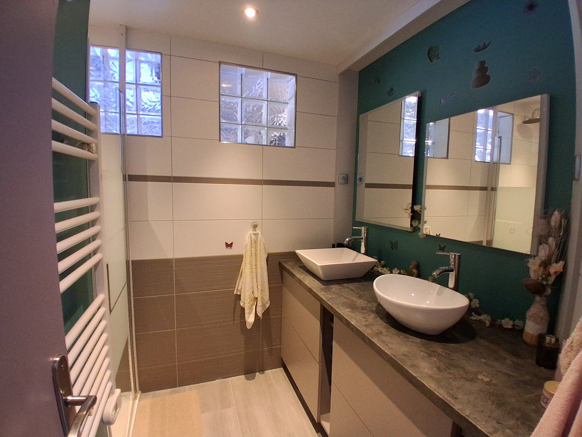 Elle offre une vaste pièce de vie lumineuse de 60 m2 avec cuisine ouverte, idéale pour partager des moments conviviaux en famille ou entre amis. La partie nuit se compose de trois chambres, dont une suite parentale, une salle d'eau supplémentaire et deux WC indépendants.