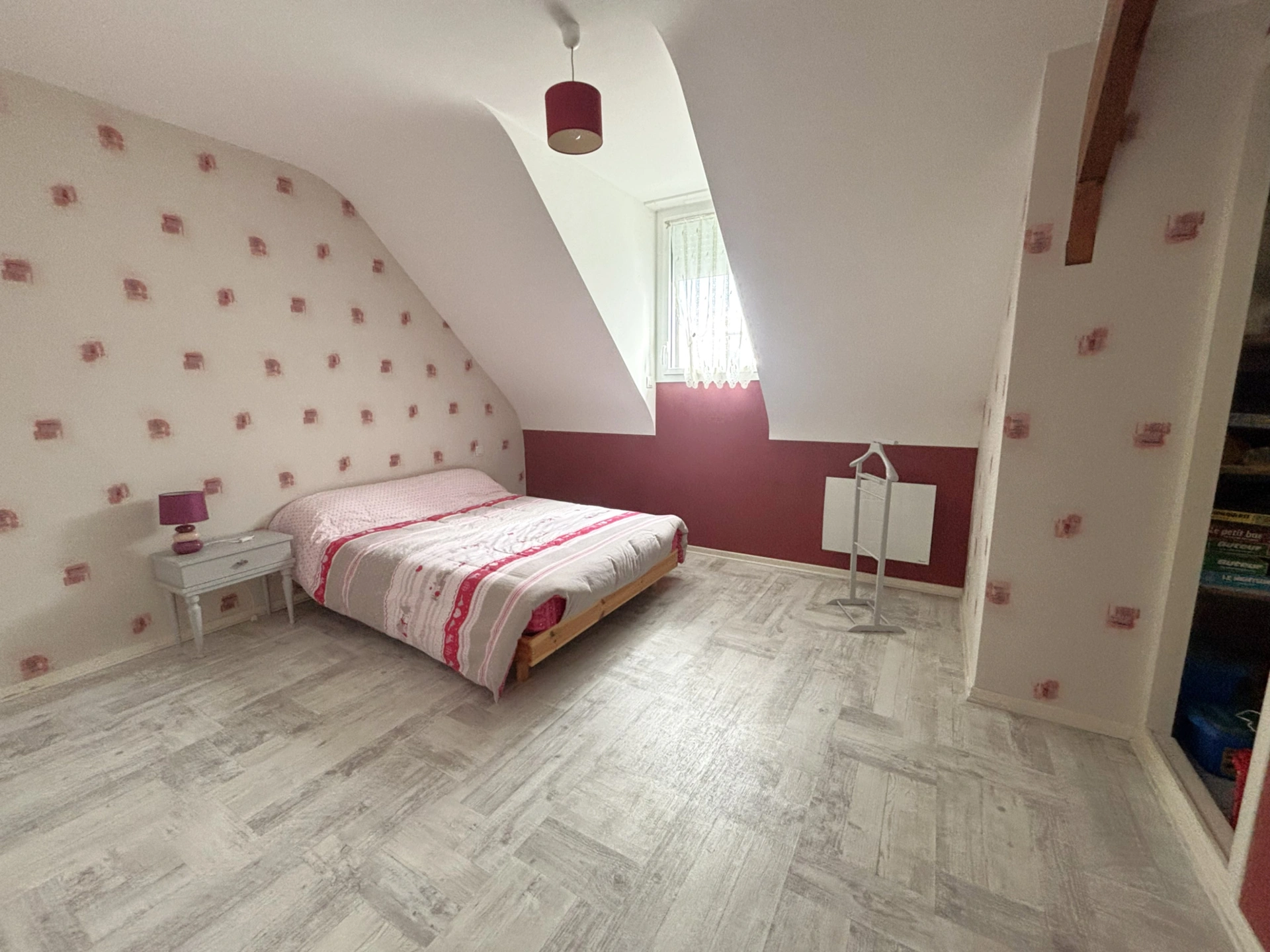 À l'étage, le palier dessert trois chambres, une salle de bains et un grenier, parfait pour le stockage ou un futur aménagement selon vos besoins.