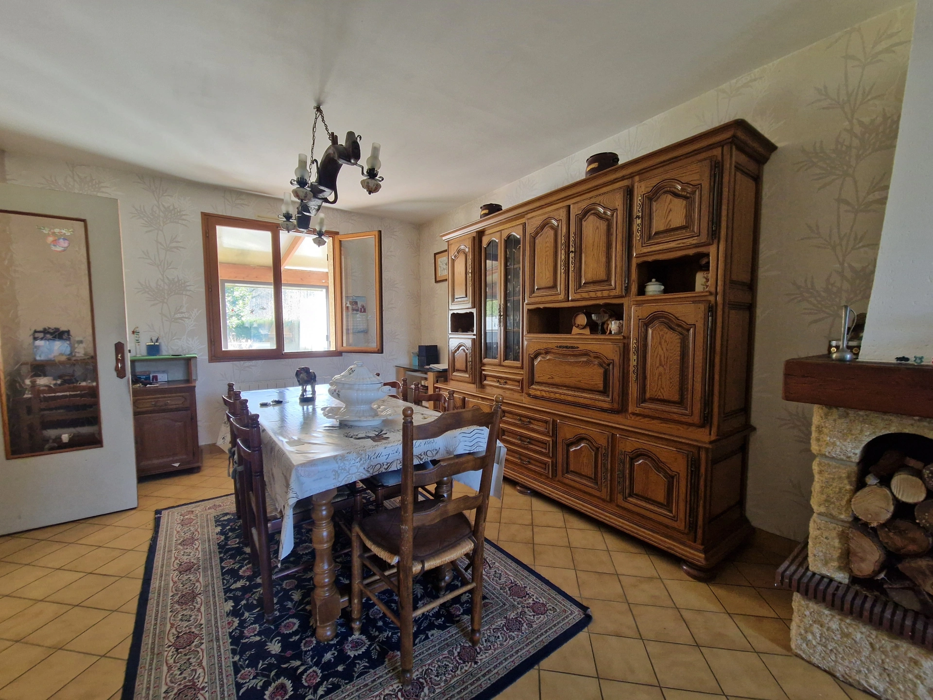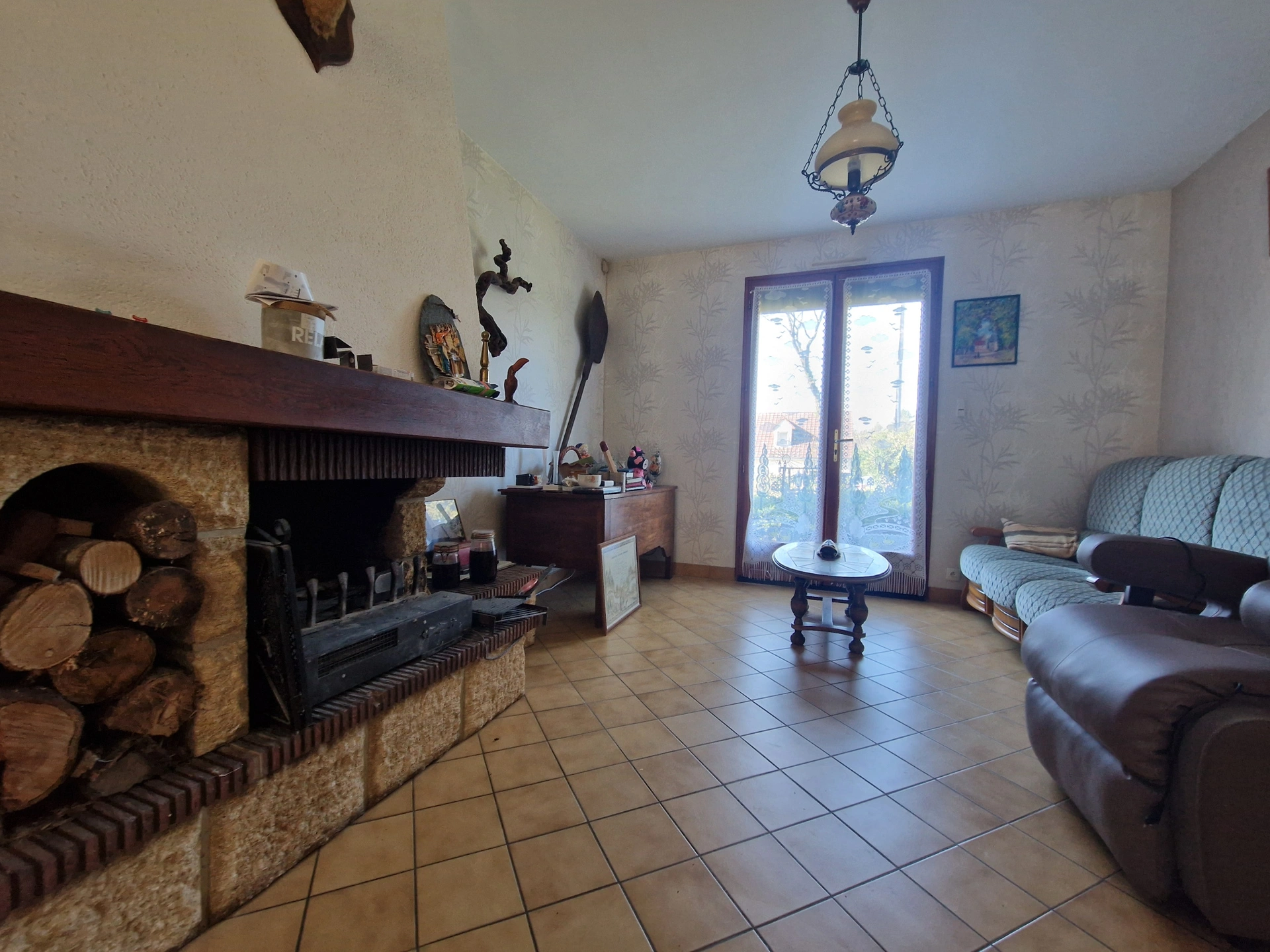 Pièce de vie lumineuse avec salon/séjour ouvert et cheminée