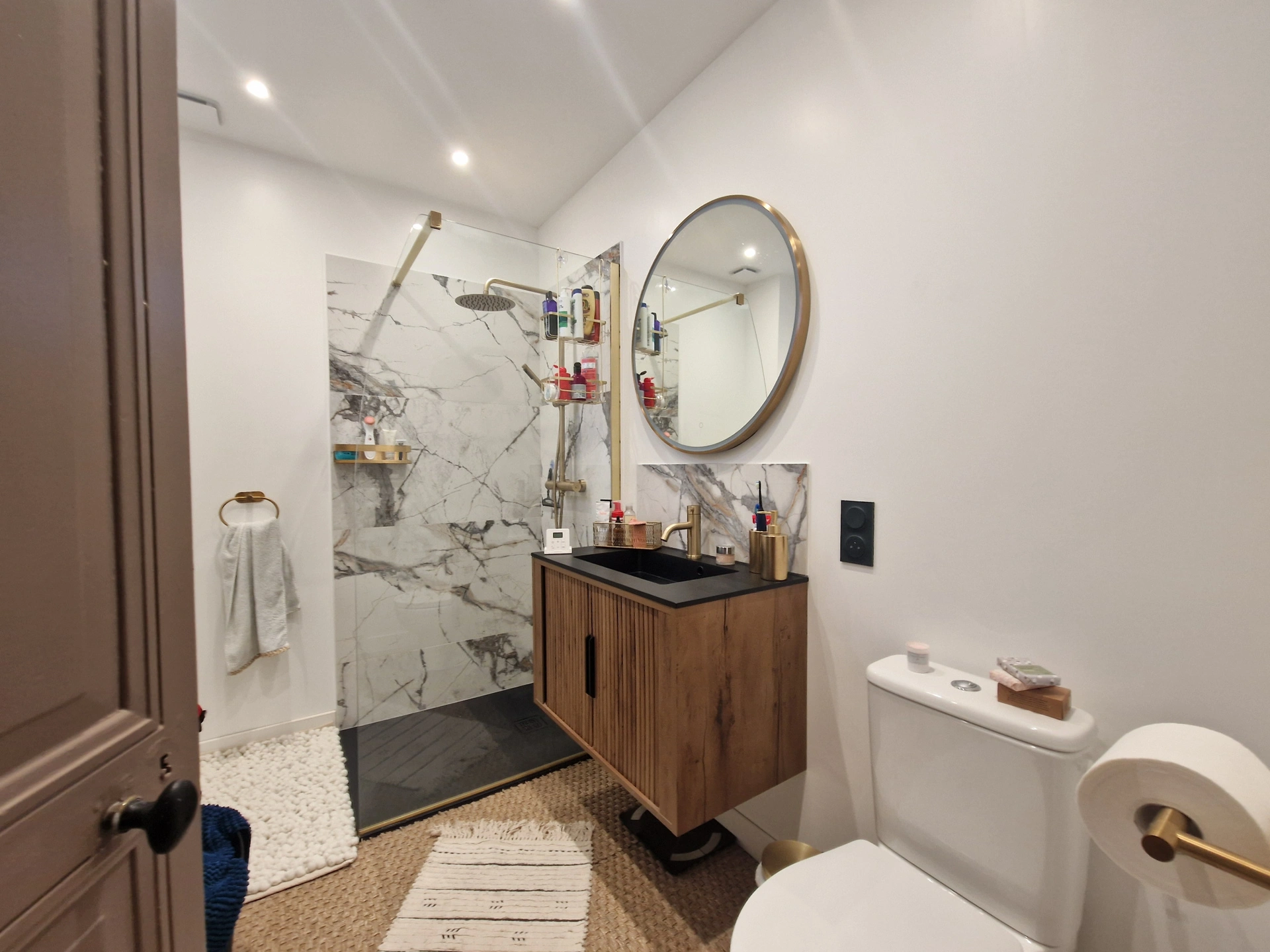 À l'étage, place au volume : Quatre magnifiques chambres avec un plafond haut de 2,90 m, Une salle d'eau au design raffiné, sublimée par sa robinetterie et ses accessoires dorés qui témoignent du soin apporté à la rénovation. Un wc complète cet ensemble. Sans oublier le WC indépendant au rez-de-chaussée.