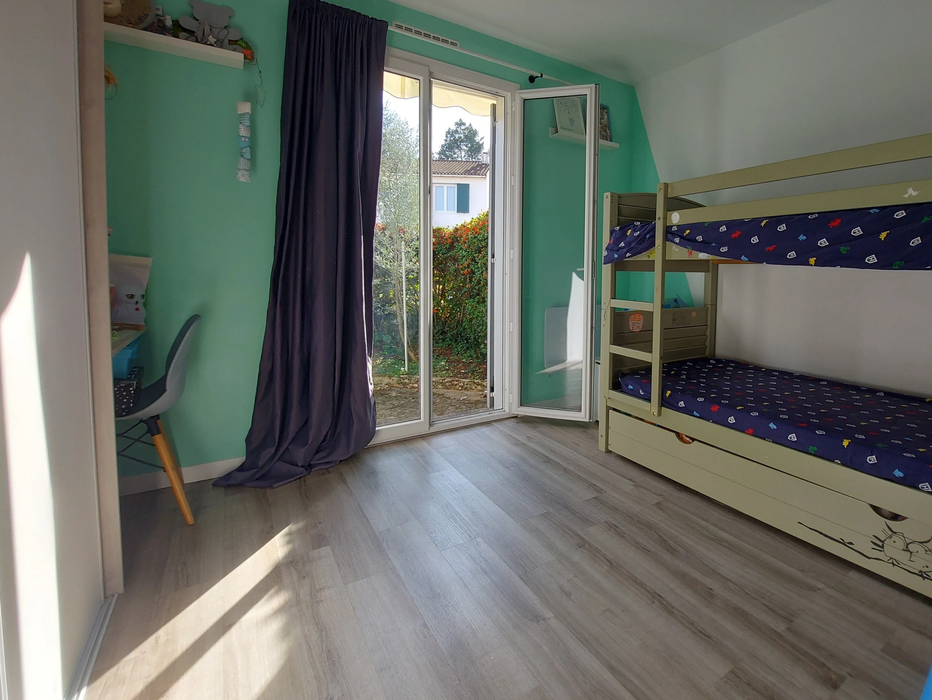 Elle offre un séjour traversant d'environ 40 m2 avec cuisine ouverte, 4 chambres, 2 salles de bains, ainsi qu'un stationnement privatif. Le tout sur un jardin clos de 500 m2, parfait pour profiter des beaux jours en famille.