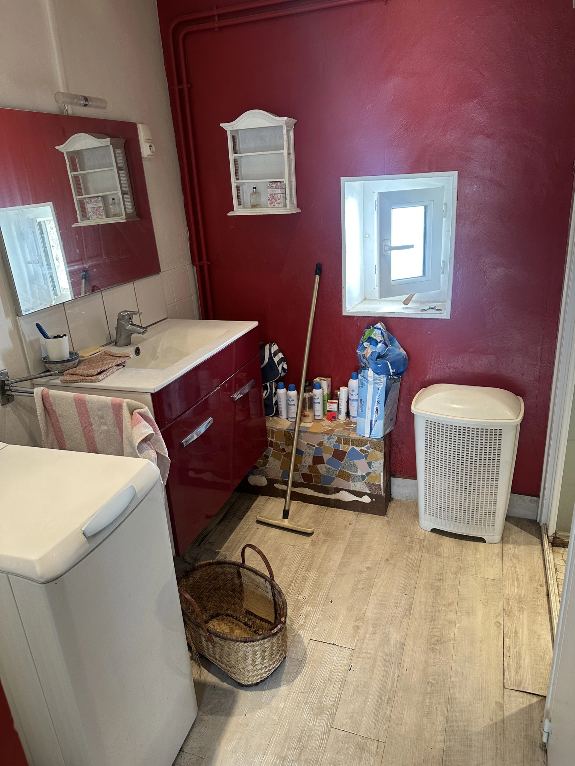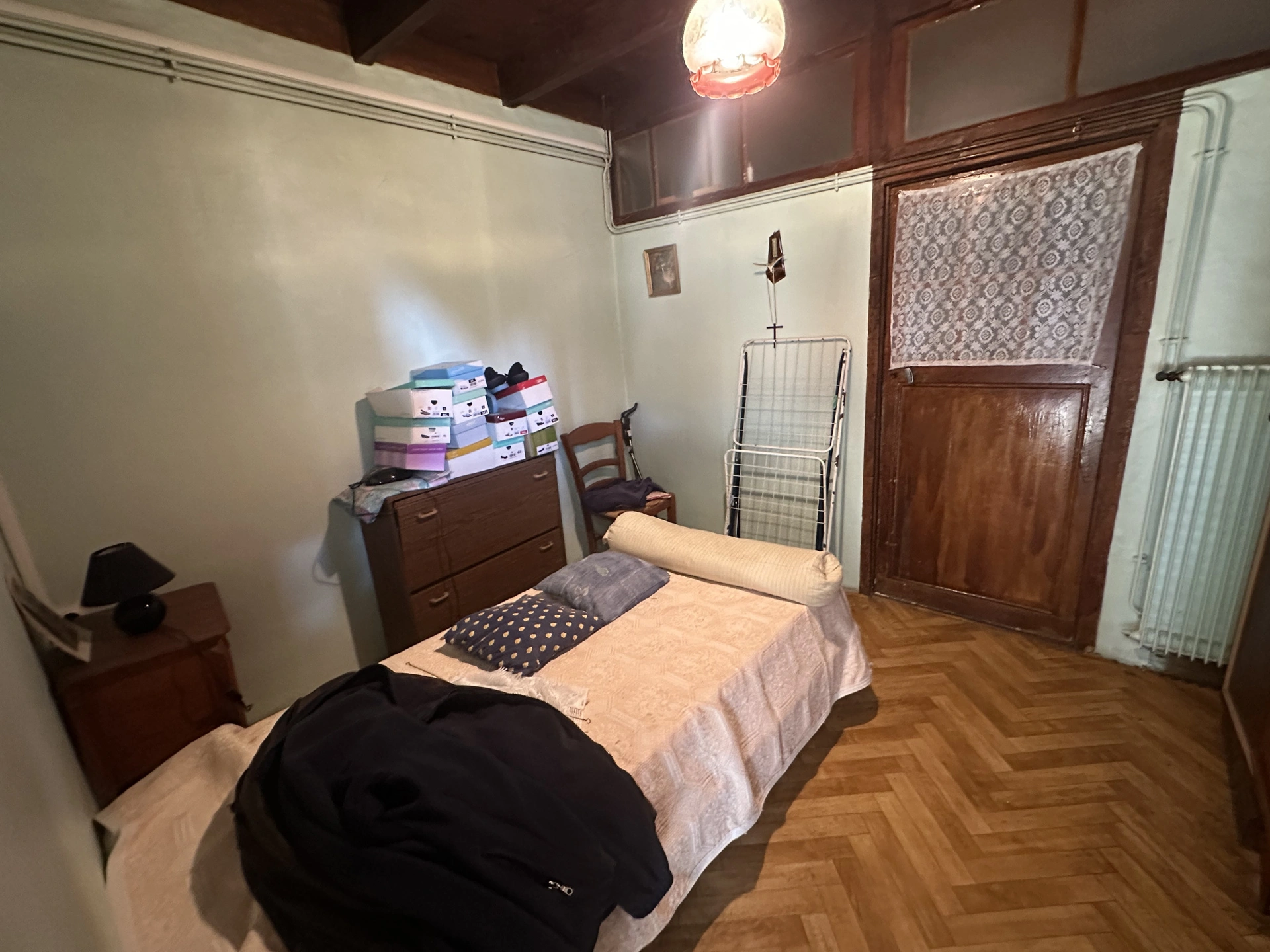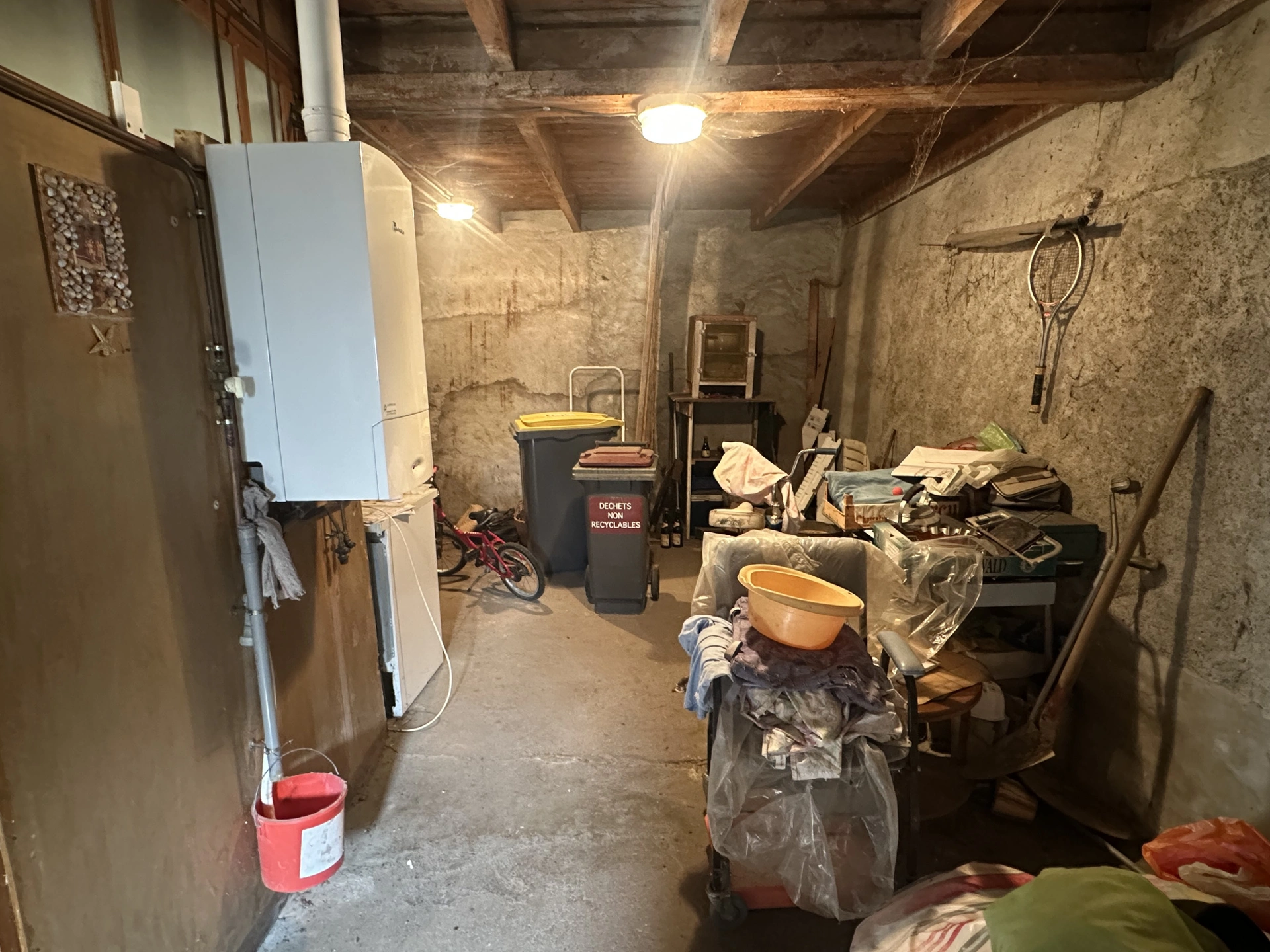 Elle se compose d'une cuisine aménagée ancienne, d'un salon-séjour, de 2 chambres dont une borgne, d'une salle d'eau récente avec douche à l'italienne, d'un WC séparé. Un cellier de 20 m2 abrite la chaudière.