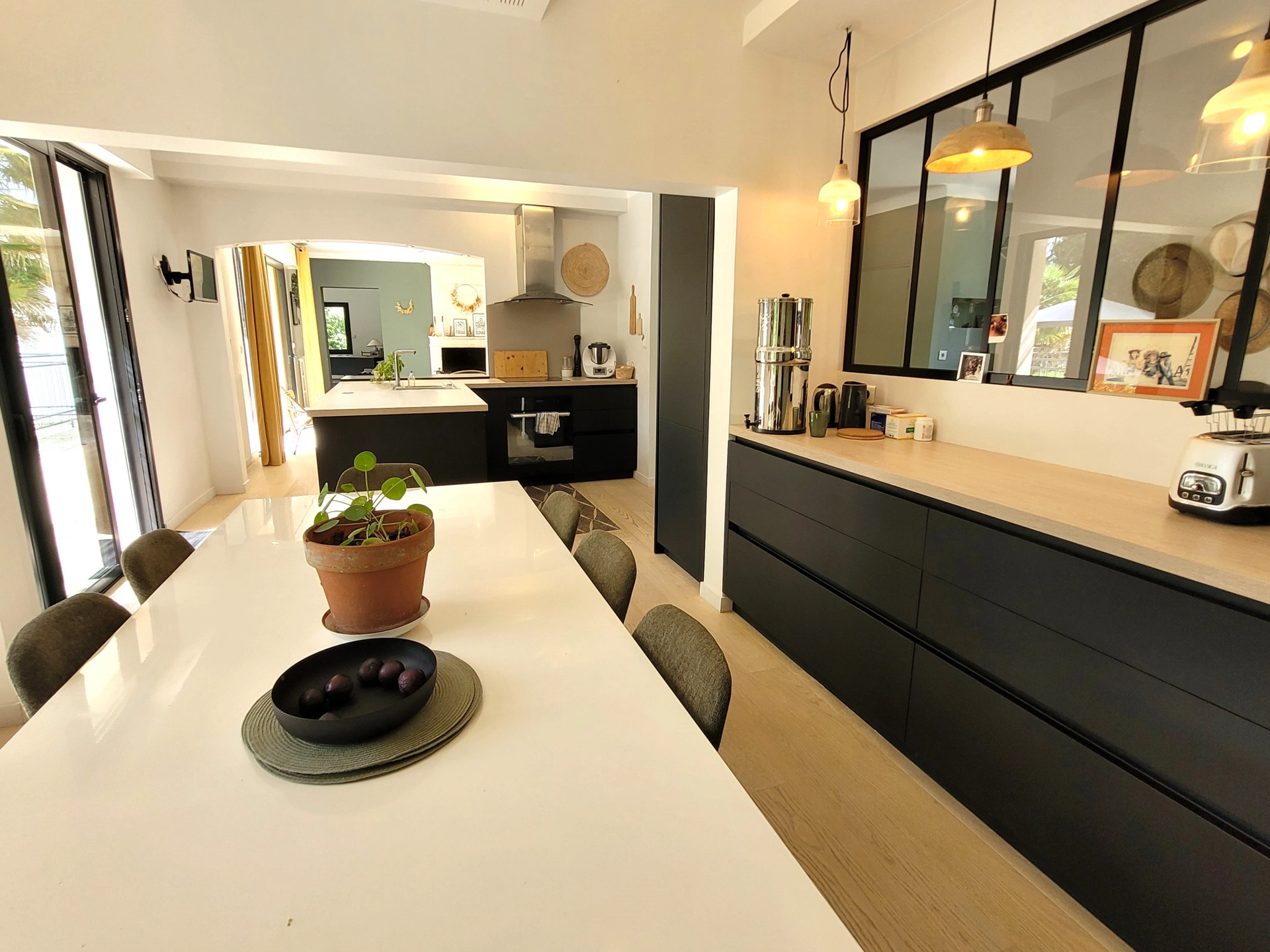 Soit une pièce de vie de plus de 110m2! avec accès directe à la terrasse exterieure donnant sur la piscine.