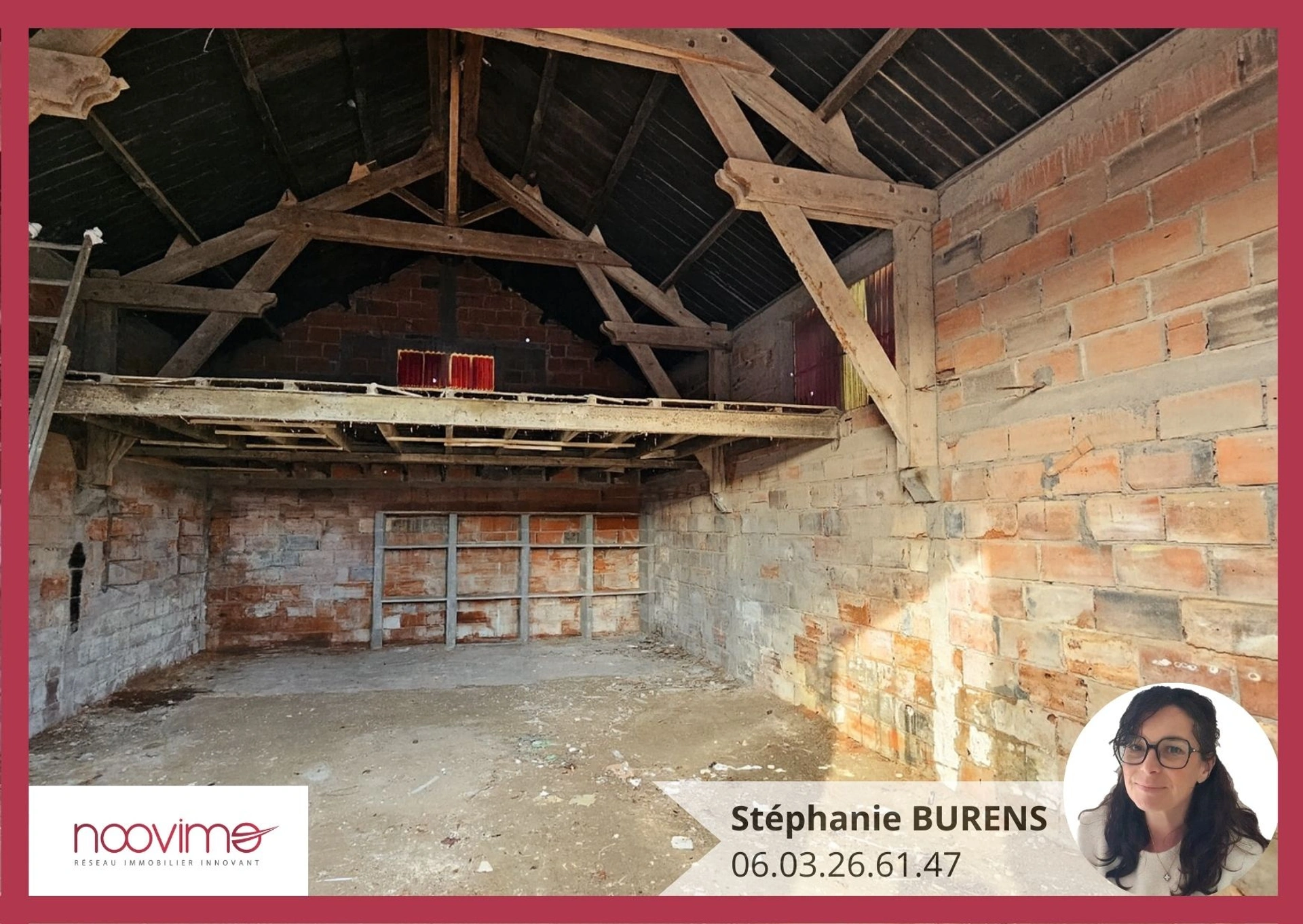 Stéphanie Burens vous propose, en exclusivité, ce hangar de 60 m2 avec un faux grenier de 34 m2, à 5min à pied du centre de Maulévrier.